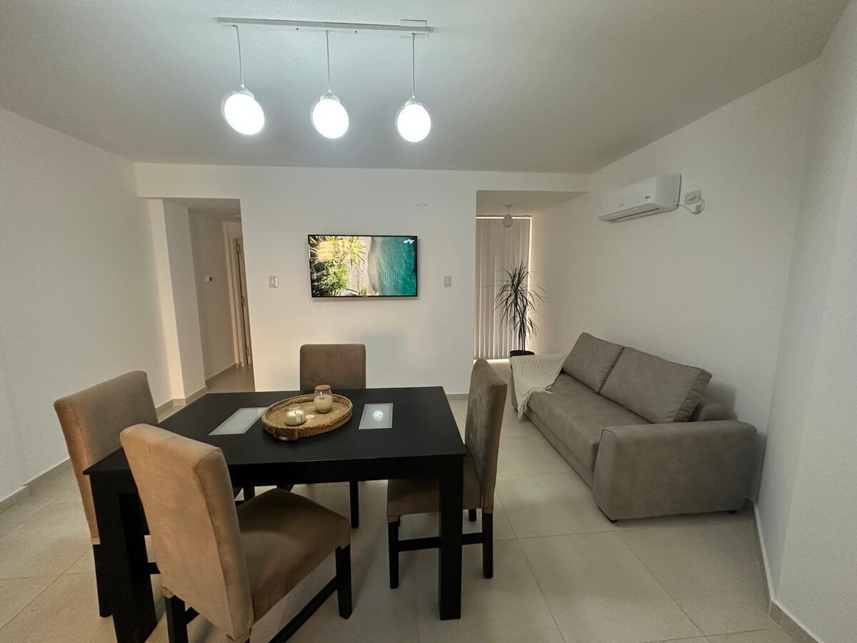 Uživajte u ovom smještaju koji se nalazi u centru 🏠Departamento intern de 2 hab para 3 personas 🛏️ Sadržaji: 1 Spavanje sa krevetom sa 2 sjedišta, plakatom, svijetlim stolovima sa svijećnjacima i pogledom na svijetlo unutrašnje dvorište. 1 spavaća soba. sa četvrtastim krevetom, svijetlim stolom, svijećama, garderobom, plafonskim ventilatorom, sa pogledom na spoljašnjost. 🧑🍳Kuhinja: Frižider, mikrotalasna rerna, kuhinja sa plinskom rernom, potpuno opremljena posuđem. Aire acond. f/c, grijalica, TV. Svijetlo dvorište Sadržaji: Wi-Fi. Posteljina Peškiri Posuđe