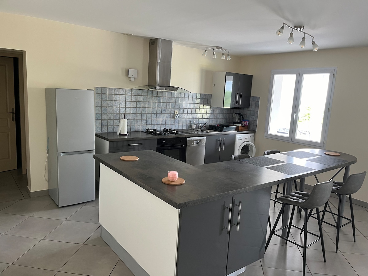 Prostrana porodična kuća za 8 osoba u Vilfranku, mirna, okružena zelenilom. Uživajte u bezbjednom privatnom bazenu, velikoj terasi sa roštiljem, ležaljkama i parceli od 4000 m². 10 minuta od Bajone, 20 minuta od plaža Bijarica i Angleta i blizu planina. Teren za petank. Savršeno za odmor za porodice ili grupe prijatelja. Posteljina se ne obezbjeđuje.