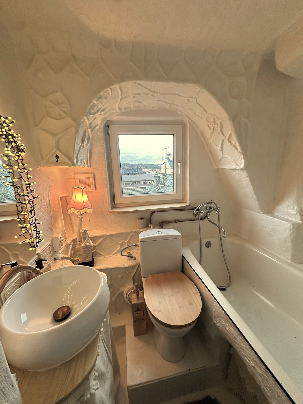 Ovaj mali stan je napravljen isključivo nakon inspiracije unutrašnjeg djeteta koje je moglo da boravi u kući koja je napravljena samo za igru, beskrajna kupatila i čita poeziju dok zvone zvona katedrale. Naslikan je nakon ideje o Magritte i nadrealizmu - miješate stvari na nasumičan način i stvara novo simbolično značenje za onoga koji gleda. Nadamo se da ćete kreirati sopstvenu priču. Nadamo se da je ovaj stan samo bajkovito iskustvo za vašu avanturu u Vilnjusu.