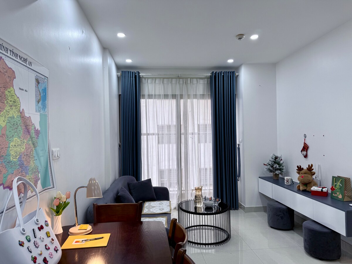 Elegant 2-bedroom apartment in the heart of Vinh City with a private balcony and city view. The building offers 24/7 security. Surrounded by gym, shopping mall, night market, supermarkets, and restaurants, and close to the stadium, park, square, and walking street. Ideal for up to 4 guests, perfect for both leisure and business stays 💕