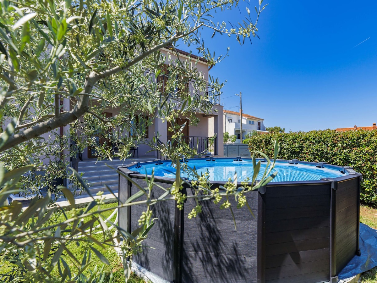 Kuća se nalazi na veoma mirnoj lokaciji u blizini drveta, samo 3 km od centra Pule i 2 km od plaže (oba nekoliko minuta automobilom ili biciklom). Ima 800 m2 dvorišta koje je ograđeno. U dvorištu deca mogu da uživaju u trampolinu širokom 3 m, ljuljačkama i toboganima. Kuća je potpuno nova, novo opremljena i moderno uređena. Vaši dani će početi da cvrkuću ptica i da se opustite u hidromasažnom bazenu za 6 osoba sa stereo uređajem, sa pogledom na zvezdano nebo. Kuća ima tri spavaće sobe, dva kupatila, dnevnu sobu, veliku opremljenu kuhinju, trpezariju i veliku terasu. Dve spavaće sobe imaju bračni krevet, a treća krevet na sprat. Oba kupatila imaju tuš, a u velikom kupatilu su takođe kada, bide i mašina za pranje veša. Kuhinja je opremljena rernom, mašinom za sudove, mikrotalasnom rernom, električnim priborom za vodu, aparatom za kafu, tosterom i svim drugim potrebnim stvarima. U dnevnom boravku je udoban kauč sa kojeg možete da uživate na pametnom TV-u, hifi ili bežičnom internetu. Kompletna kuća je pokrivena uređajima za hlađenje koji će učiniti vaš boravak prijatnim. Na terasi je sto sa šest stolova, fudbalski sto, a u dvorištu su roštilj, tuš i hidromasažni bazen. Nudimo bicikle po cijeni 4. Ako želite da provedete odmor sa porodicom, opustite se ili ste aktivni, naša kuća je idealna za vas :) Cela vila sa dvorištem (uključujući hidromasažnu kadu, roštilj, trampolin,...) je samo za vas.