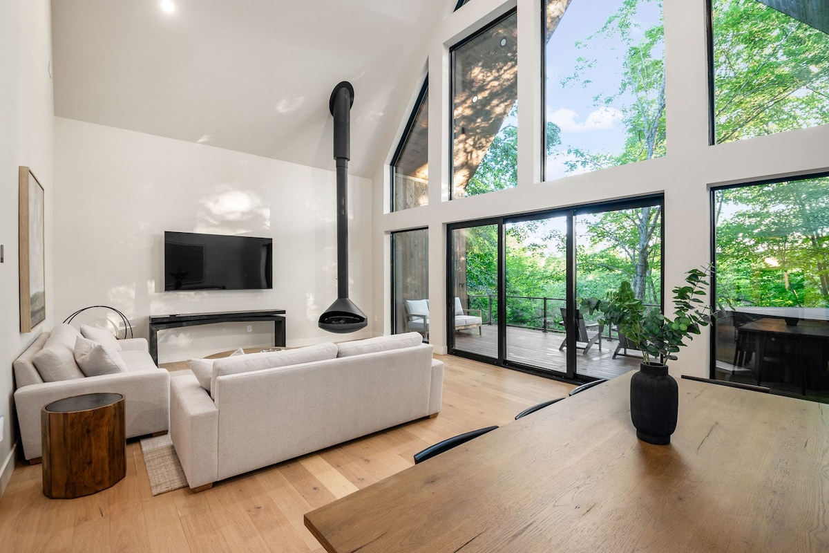 Ever After je luksuzni okvir za dvije osobe. Pravi Cedar se trese na oba kraja brvnare sa modernim enterijerom. Podovi od tvrdog drveta od hrasta u glavnom dnevnom boravku sa stolicama za doručak. Veliki 55-inčni Smart TV, samo Starlink WI-FI i strimovanje. Birajte između jacuzzi kade ili prelepe luksuzne tuš-kabine sa pločicama Nero. Zaspite u veličini kraljice Ever After loft s dvostrukim osvijetljenim noćnim ormarićima. Sjenica sa hidromasažnom kadom iznad zemlje će vaš doživljaj učiniti nezaboravnim!