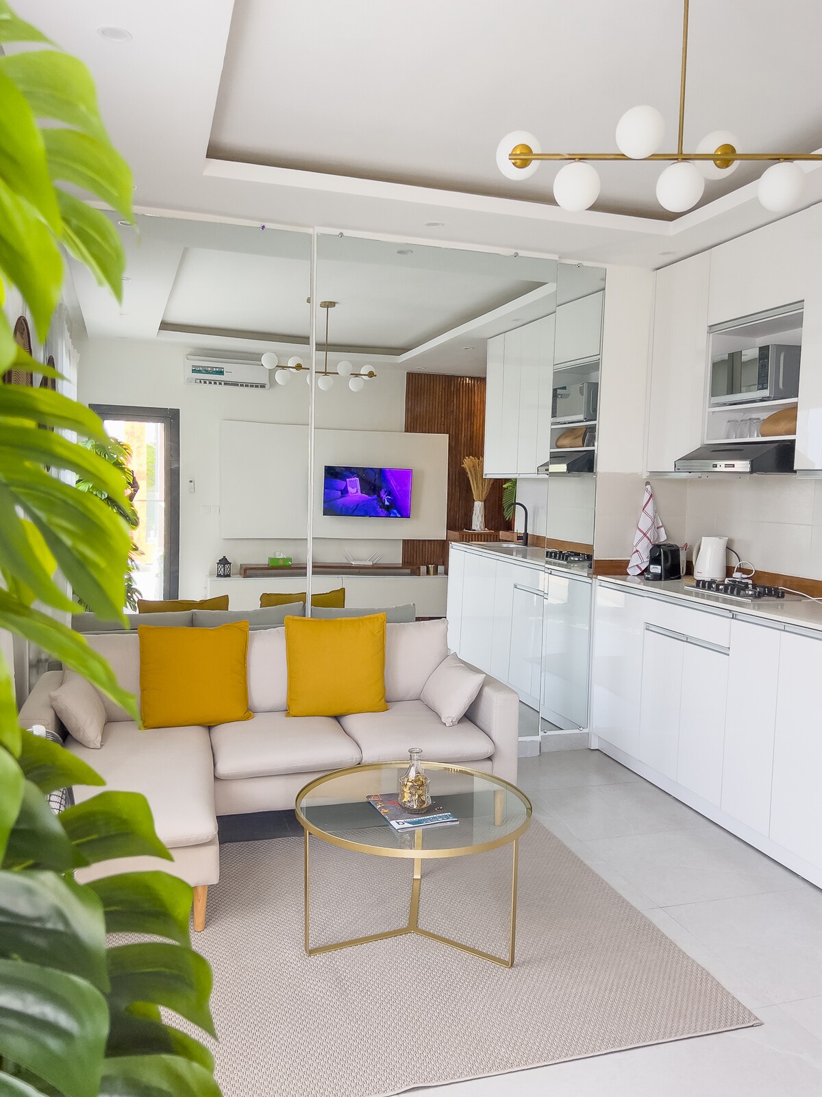 Ovaj smještaj je savršen za grupe. Smješten u sigurnoj rezidenciji sa danonoćnim obezbjeđenjem, stan nudi svijetli dnevni boravak (Netflix/Prime TV, Hi-Fi, klima-uređaj), kuhinju opremljenu vešerajom i tri udobne spavaće sobe, dvije sa privatnom tuš kabinom. Uživaćete u zajedničkom bazenu i mirnom okruženju, na samo 5 minuta hoda do plaže Virage i u blizini sadržaja, restorana uz more, kazina, prodavnica i taksija.