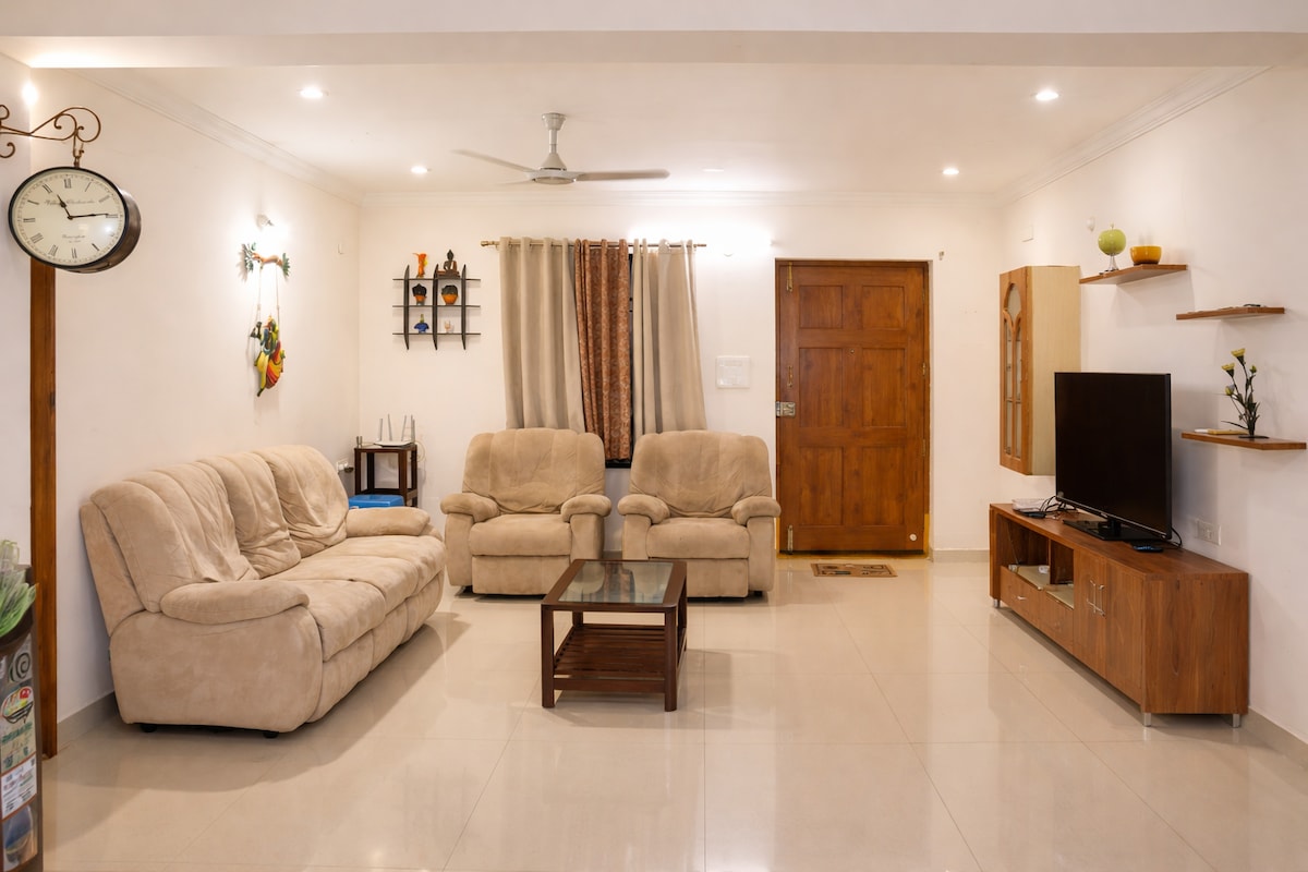 Kick back and relax in this calm, stylish space. Experience a cozy and stylish 1BHK perfect for couples, families, or solo travelers. Enjoy a bright living space, a comfy bedroom, a functional kitchen, and a refreshing terrace area. BBQ🍤, 🔥 camphire , and home-style food 🥘 are available on request. A peaceful, secure stay with 24/7 CCTV surveillance.