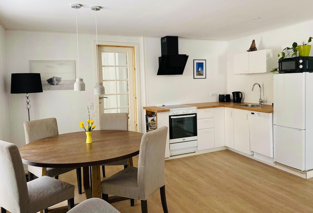 Min hyggelige lejlighed ligger centralt i byen med kort afstand til havet, bymidten og indkøbsmuligheder. Stilen leder tankerne hen på havet, klitterne og badehusenes særlige charme. Lejligheden er 82 kvm med 2 soveværelser med 3/4 seng, samt sammenhængende stue/køkken. Der er direkte adgang til en skøn vestvendt terrasse med kig til klitterne og byens tage. Lejligheden ligger på 1.sal. Der er gratis parkeringsmuligheder tæt på og mulighed for aflæsning ved døren