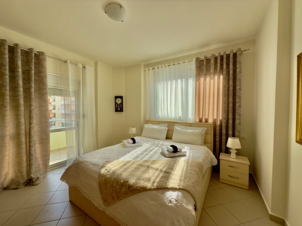 Povedite svoje najmilije na ovu vrhunsku lokaciju uz plažu i uživajte u elegantnom smještaju uz more u srcu Mediterana. Smješten na Vlorinom Lungomareu, ovaj prostrani stan ima 2 spavaće sobe i 2 balkona sa spektakularnim pogledom na more i planine. Opremljen modernim sadržajima, prostor je savršeno dizajniran za duge porodične boravke ili kratke romantične kapije. Uživaćete u pješčanoj plaži na kućnom pragu i živahnom šetalištu punom kafića i restorana.
