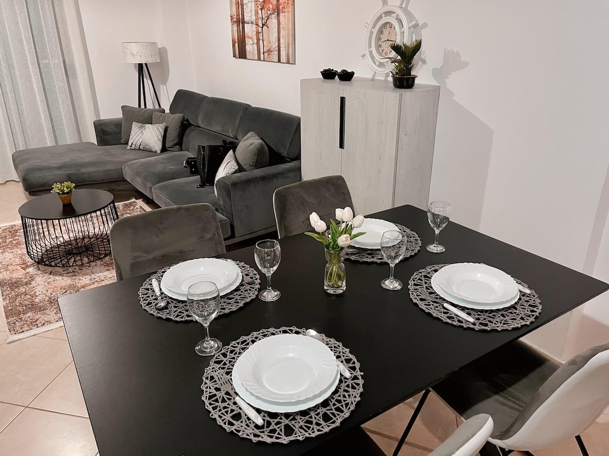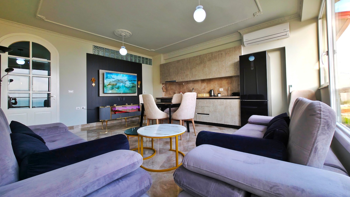 Osećajte se kao kod kuće u našem toplom stanu. Uživajte u zapanjujućem pogledu na more sa velikog balkona ukrašenog prirodnim cvećem. Naše mesto je novo i ima savremeni osećaj dok je još uvek privlačan. Uključuje praktičnu kuhinju, glavnu spavaću sobu, udoban kauč u dnevnom boravku otvorenog tipa i elegantan tuš dizajniran sa pažnjom. Pogodno za radnike na daljinu. Nalazi se u najatraktivnijem dijelu grada, na samoj obali mora, naš smeštaj je idealan za vašu posetu i boravak u Vloreu.