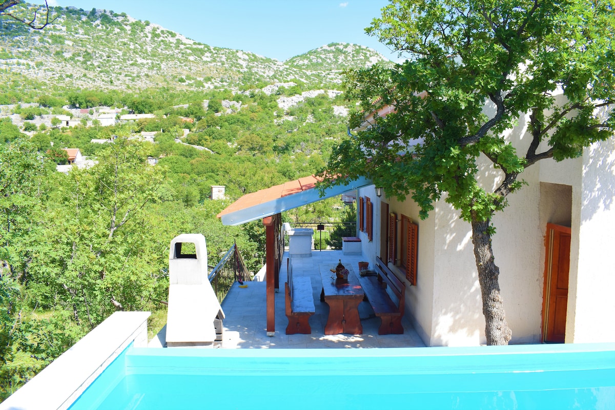Odmor iz snova! Vila sa bazenom za 9 osoba, 4 sobe, 2 kupatila, 2 kuhinje i 2 trpezarije. Uživajte u terasi od 300m2 sa prelepim pogledom na more i Kvarnerska ostrva. Roštilj, 6 parking mesta i potpuna privatnost na 5000m2 dvorišta. Prvi susedi udaljeni 1km. Idealno smeštena, samo 20 km južno od Senja ili 30 km severno od Karlobaga. Rezervišite svoj rajski odmor sada i uživajte u potpunoj privatnosti i opuštajućim zvucima prirode!