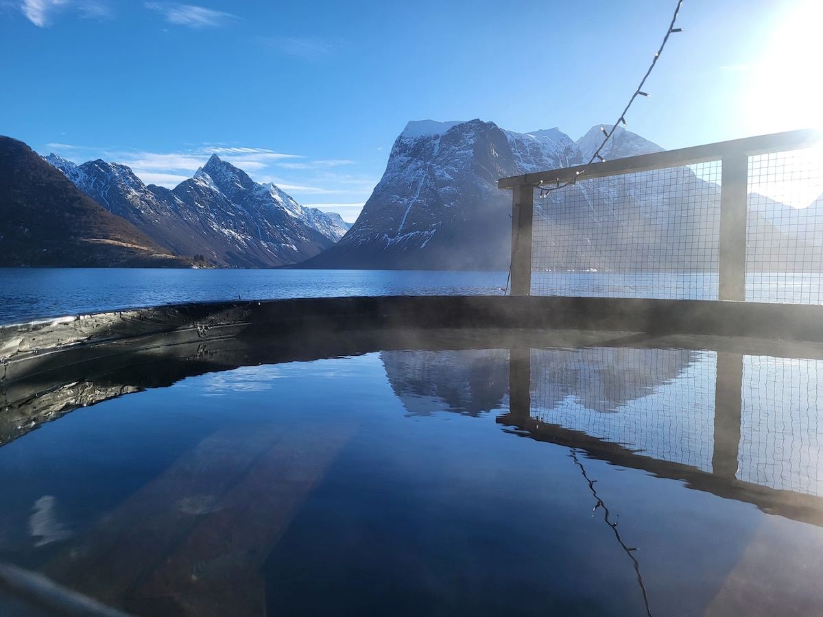 Ovdje se nalazi sauna i hidromasažna kada na drva sa morskom vodom koja može da iznajmi i uživa u miru i lijepom pogledu na Hjørundfjord. This is and eiga harbor with a possibility to rent a boat. cijena po danu 16 stopa 15/20 konja 600kr plus benzin. 18 stopa 30 konja 850 NOK dnevno. benzin je pored onoga što je kupac koristio. evo prsluka za spašavanje koji može da pozajmi. Sva kirija za brod je na sopstvenu odgovornost