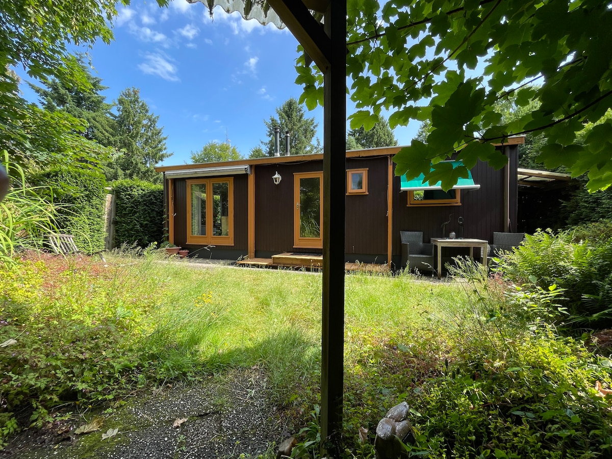 Ako želite da se vratite na osnovno, da imate otvoren um i da vam ne treba savršenstvo, onda se opustite i uživajte u našoj samostalnoj baštenskoj kući! Izgradili smo ga sa mnogo ljubavi i zabave na kreativan, organski način od recikliranih, pronađenih i doniranih materijala. Mala kuća (20 kvadrata) je jednostavna, ali pod brigom velikog Douglas Pine drveta i sa dovoljno osnovnih elemenata u kuhinji, kući i sopstvenoj privatnoj bašti možete se osećati opušteno, sigurno i srećno! 26 km od Amsterdama 24 km Utreht 5,6 km Hilversum 200 m od prirode!