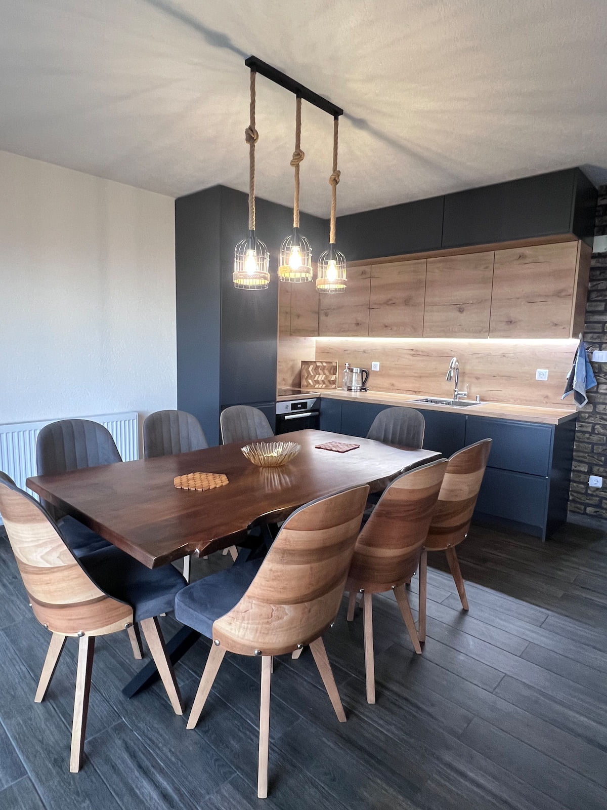 Probudite se uz očaravajuću panoramu kanjona Matka iz svog privatnog stana na najvišem spratu – litice, rijeka i šuma protežu se ispod vašeg balkona. Koliba s pogledom na kanjon smještena je u hrastovoj šumi Matke, a u apartmanu „Comfort“ imate cijeli gornji sprat samo za sebe: dvije spavaće sobe s bračnim krevetima (širine 150–179 cm), potpuno opremljenu kuhinju, prostranu dnevnu sobu i balkon kao stvoren za duga jutra uz kafu. Od smeštaja ste na nekoliko minuta hoda od glavnih atrakcija Matke: izleta brodom, vožnje kajakom i pešačenja!