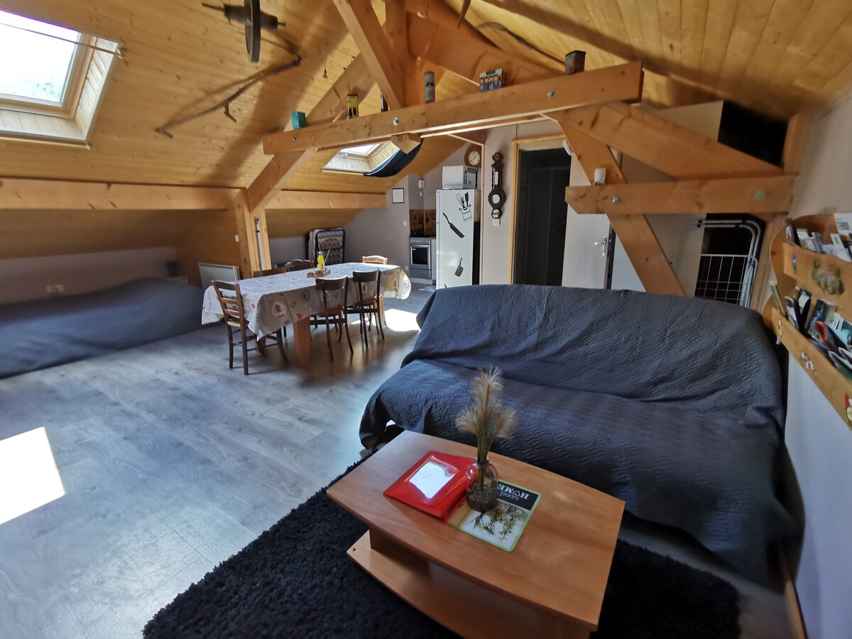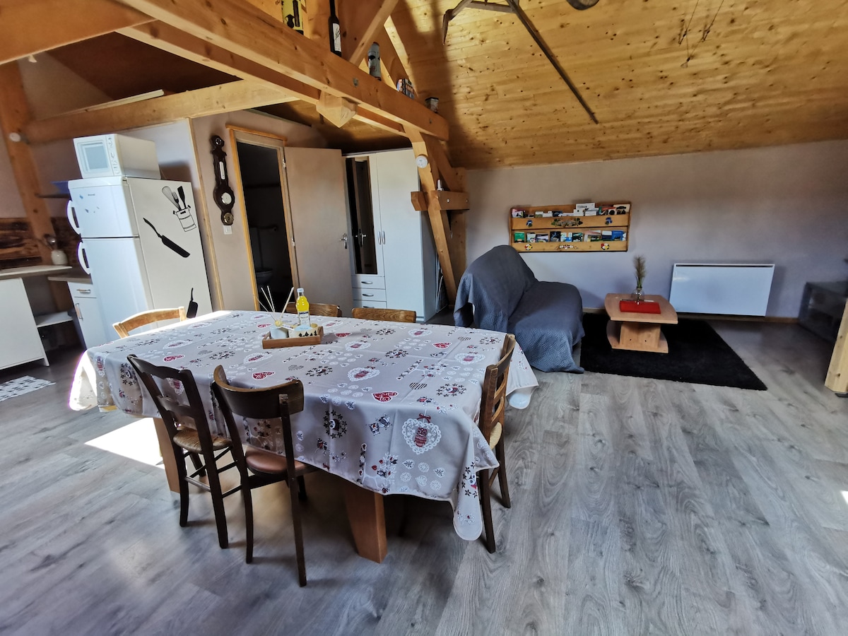 Studio od 50 m2 na prvom spratu, u toplom i tradicionalnom stilu. U mirnom selu, u blizini biatlonskog stadiona Florence Baverel, sa početkom nekoliko pešačkih staza ili staza za planinski bicikl, u blizini biciklističke staze, skijaških staza i skijališta... 2 kreveta dimenzija 140x190 i mogućnost dodatnog kreveta za jednu osobu tuš kabina sa WC šoljom Potpuno opremljena kuhinja sa mašinom za sudove, kombinovanim frižiderom, 1 šporetom sa rernom, Senseo aparatom za kafu. Masažna kada u zavisnosti od dostupnosti