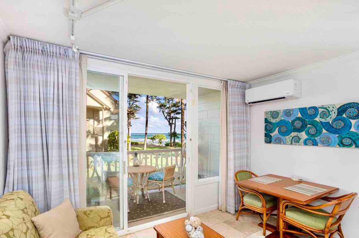 Predivan prizemni studio apartmanbr. 116 sa čajnom kuhinjom na ostrvu Islander on the Beach. Samo nekoliko koraka od plaže! Odlična, mirna lokacija u odmarališnom kompleksu i ima pogled na okean sa lanaja. Islander on the Beach, Hawaiian Style Resort is set on six acres of oceanfront property with buy landscaping, pool, sandy beach, and more. Do prodavnice/restorana se stiže peške. Njegova centralna lokacija pruža jednostavan pristup brojnim znamenitostima širom Kauaija. BEZ NAKNADE ZA ODMARALIŠTE/BESPLATNO PARKIRANJE