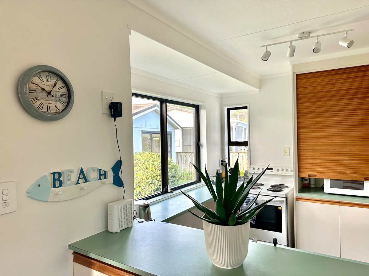 Luxury, one of a kind beach front accomodation Breathe, relax and marvel at the expansive views of the ocean on your doorstep and majestic Kapiti Island. Close the door and its your own private getaway. Watch the moonlit ocean and stars on the horizon. Perhaps this just is heaven ! Enjoy this haven with someone you love, or take the solitude, and space to escape This studio has its own walk in shower with rain head and a private spa for your exclusive use.