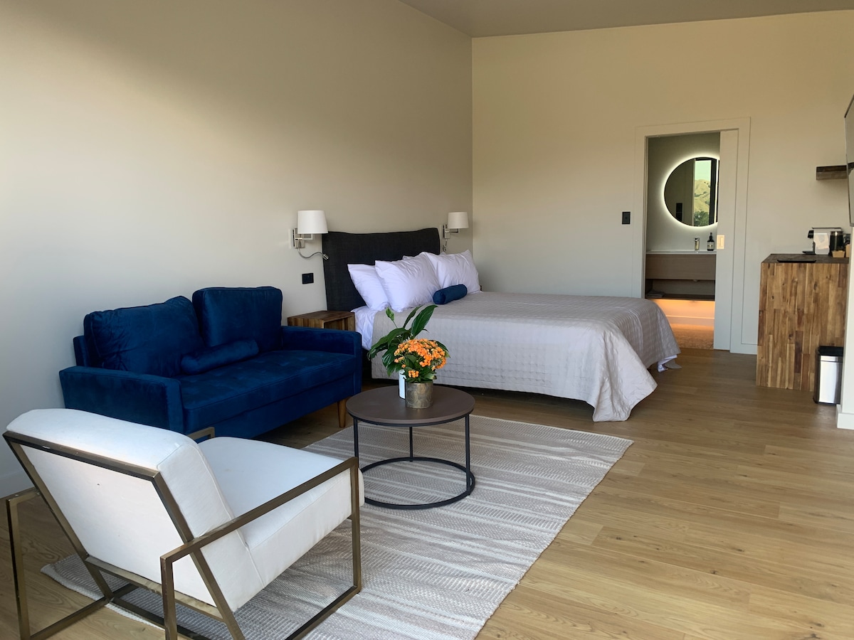 River Song Cabin at Ripples Retreat is all people imagine about NZ — rolling hills, a calm river & birdsong. Hand-built on our family farm & surrounded by Hobbit landscapes, this romantic king studio sleeps 5 across 3 beds including a cosy bunk nook. Couples love the outdoor bath & stargazing; families enjoy kayaking, fishing & meeting the sheep. Many stay 3–5 nights for waterfalls, glowworms, Hobbiton & beaches — or as a soft landing or gentle goodbye to NZ. Stay 4+ nights for a free farm tour.