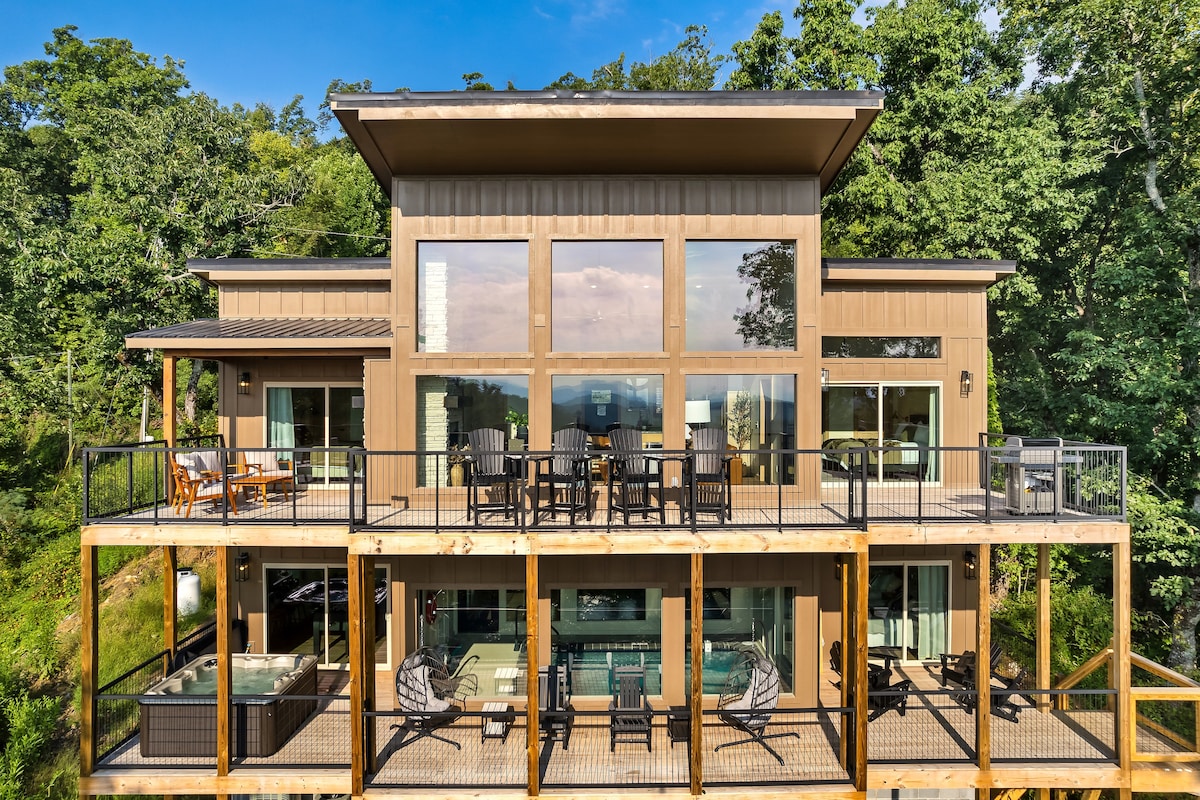 NOVO! NOVO! Moderna brvnara Pigeon Forge! Panoramski POGLEDI