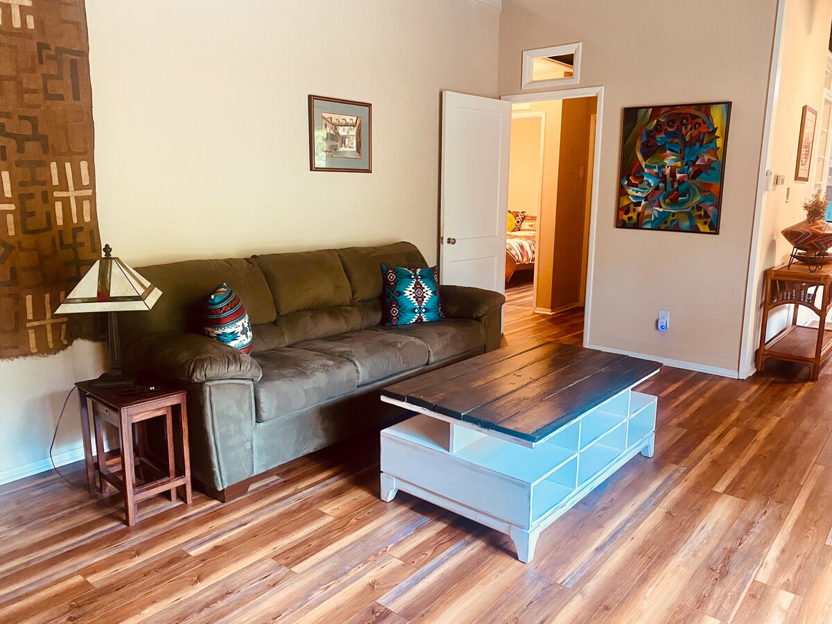 Detaljno razmišljamo o čišćenju, sada više nego ikada. Kvake, ručke na slavinama i prekidači za svetlo se detaljno sterilišu između boravaka gostiju. Vaše zdravlje nam je prioritet! 1 spavaća soba 1 stan u kupatilu, u blizini aerodroma UF & Thd, kompletna kuhinja i kupatilo. Vrlo udoban bračni krevet (širine 150-179 cm). Predivan dnevni boravak i bar sa odličnim osvjetljenjem. Staza u prirodi od četvrtine milje kroz 5 hektara magnolija, hrastova i drevnih borova tik ispred ulaznih vrata. Uživajte u pravoj Floridi!