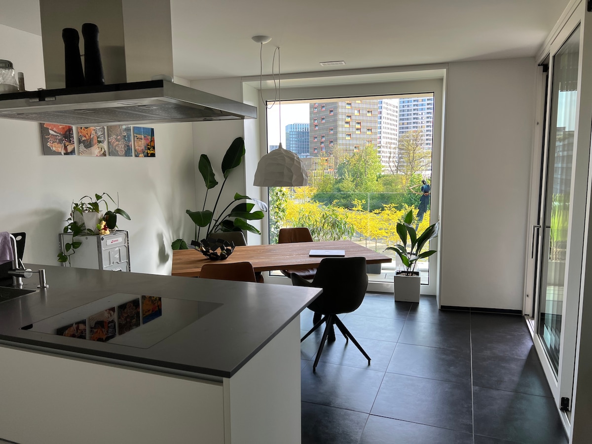 Smješten u okrugu Oerlikon u Cirihu, stan nudi dvije lođe i pogled na baštu. Apartman se nalazi u prostoru u kojem gosti mogu da se bave aktivnostima kao što su planinarenje i biciklizam. Stan ima spavaću sobu, potpuno opremljenu kuhinju sa mašinom za pranje sudova, rernu i kupatilo sa tuš kabinom. Nova stambena zgrada je udaljena 10 minuta od aerodroma (voz) i još 10 minuta vozom do centralne stanice u Cirihu.
