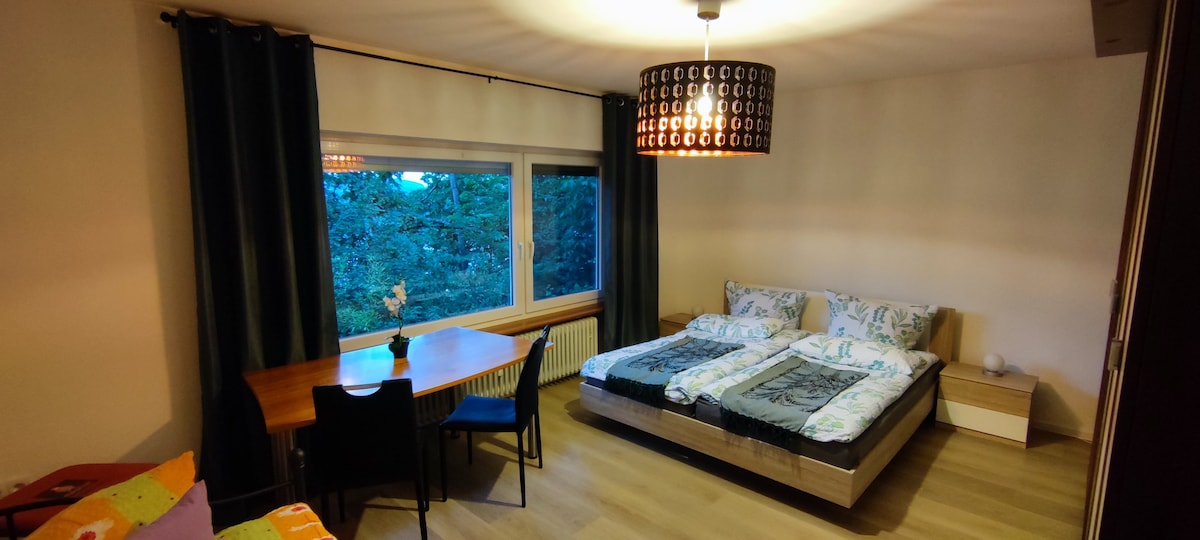 Udoban studio sa osvetljenjem od 35m2 do 2 osobe u mirnom stambenom području u Grenzachu, idealnom za rad u Bazelu ili za posete Saut Badenu, Alsi i Švajcarskoj. 3 minuta do autobusa do Bazla, 5 minuta do železničke stanice Grenzač. Studio na 2. spratu stambene zgrade ima mali balkon sa pogledom na prirodu . Moderno opremljen sa dobrim dušecima i novim tušem. Potpuno opremljena kuhinja sa Nespresso mašinom. Wi-Fi.