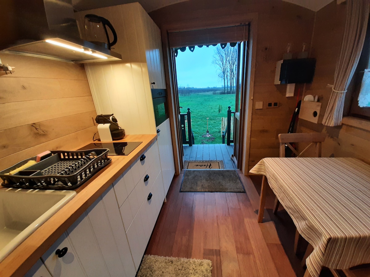 Karavan, pun šarma, sa svim modernim udobnostima: TV-om, Wi-Fi mrežom, kuhinjom opremljenom grijanjem/klima-uređajem... Provešćete nezaboravan boravak u ovom udobnom malom gnijezdu. Prikolica se nalazi u blizini farme , u voćnjaku, na ivici živopisnog jezera. Mogućnost prelijepih šetnji ili vožnji biciklom.
