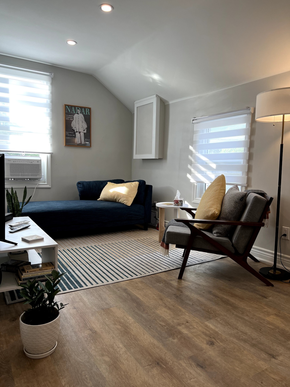 Dobro došli u Udobno plavo skrovište! Naš elegantni jednosobni stan je savršen za vaš boravak, bilo da dolazite poslovno ili samo želite miran odmor. Dnevni boravak Snažan Wi-Fi Smart TV, udoban kauč i stolica Klima-uređaj Spavaća soba Bračni krevet (širine 150-179 cm) sa čistom bijelom posteljinom Plafonski ventilator Namjenski radni sto Kuhinja Pripremite se za kuvanje kod kuće Šporet, mikrotalasna rerna, čajnik, toster, mašina za sudove Keurig aparat za kafu Kupatilo Prilagođene pločice, nova staklena tuš-kada Kombinovana mašina za pranje/sušenje veša Mnogo parkinga na ulici.