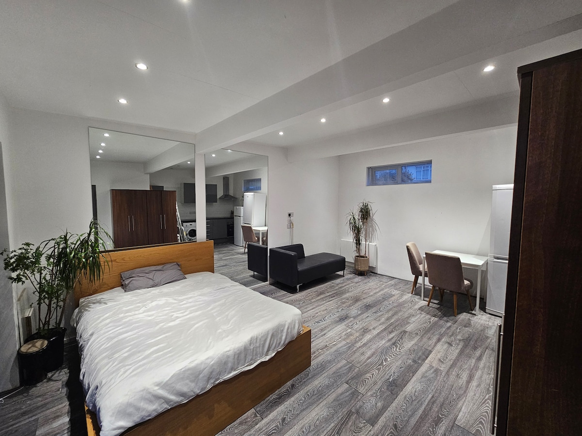 Pobjegnite od gužve i vreve u ovom šarmantnom jednosobnom stanu u prizemlju. Nalazi se u zelenom, mirnom džepu Enfilda. Nalazi se na kratkoj šetnji do Enfild Tauna ili stanice Enfild Čejs za veze sa Kings Krosom i gradom. Uživajte u opuštajućem boravku uz udoban bračni krevet, potpuno opremljenu kuhinju, namjenski radni prostor sa dva monitora, brz Wi-Fi i aparat za kafu. Istražujete London, radite na daljinu ili se jednostavno opuštate? Naš stan je vaš idealan dom daleko od doma.
