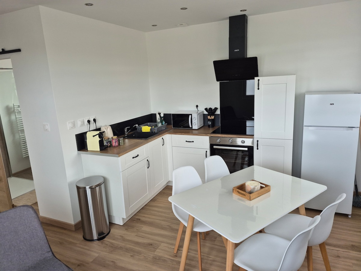 Smještena u staroj seoskoj kući, Le Cottage je potpuno renovirana, klimatizovana soba za goste dizajnirana da vam ponudi pravi trenutak bijega. Uživajte u intimnom i udobnom prostoru sa mnogo sadržaja posvećenih vašem blagostanju. ✨ Privatni spa sa kadom za balneoterapiju, infracrvenom saunom Aparat za kafu i čajnik (čaj i kafa su dostupni) Frižider i mikrotalasna rerna 🔊 Zvučnik Marshall Pristup YouTube-u, Netflix-u, Disney+ i Canal+ kanalima preko projektora