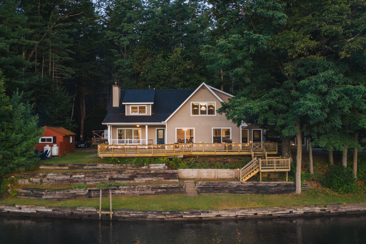 Moderna, udobna brvnara uz obalu s terasom| Adirondacks