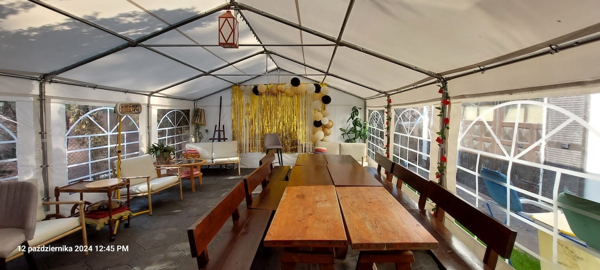 Odmor u Varšavi? Jedinstveno mjesto na periferiji grada će vam omogućiti da se osjećate kao na odmoru. 2 min. vožnje od A2. Direktna komunikacija sa Nacionalnim stadionom (30 minuta vozom SKM-Fast city) Seoska kuća se nalazi na većem objektu, do kojeg se dolazi zasebnom kapijom. Samo 4 fiksna mjesta za spavanje!!! Više gostiju je moguće za malu zabavu. Spoljašnja sauna i kamin/roštilj su uvijek dostupni, uključeni. Zatražite dostupnost, cenu i opcije pre nego što pošaljete zahtev!