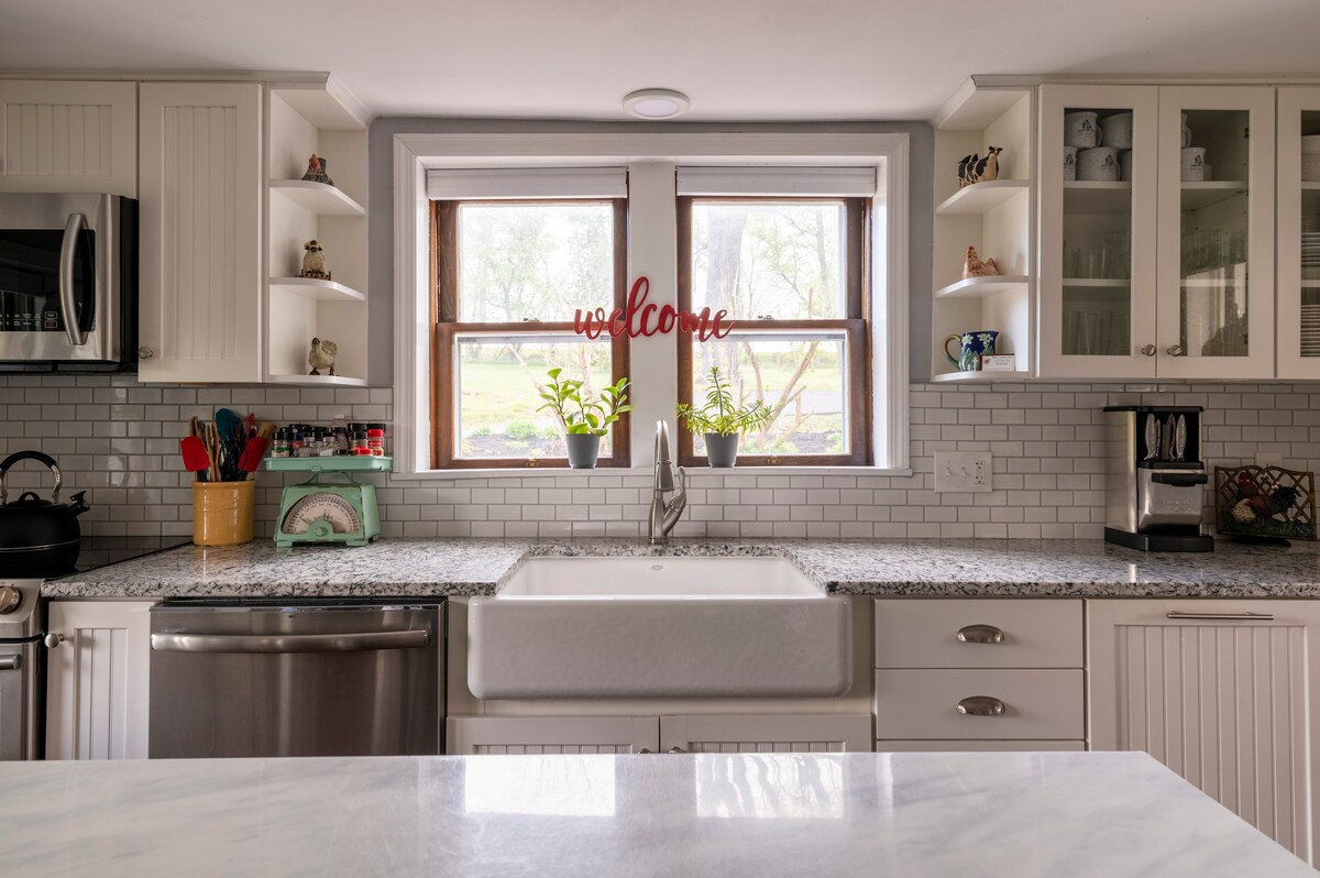 Dobro došli u Foksfajer, osamljeni, ali praktični zen-raj gdje vas u svakoj sobi čekaju pogledi koji oduzimaju dah. Smeštena na nešto više od sat vremena od Baltimora/glavnog grada, ova kuća iz 1800-ih i bivša bolnica iz Građanskog rata potpuno je renovirana 2023. godine kako bi se stvorilo vrhunsko opuštajuće, inspirativno ili romantično utočište. Od vrhunskih završnih obrada do glavnog apartmana nalik spa centru, dizajnirali smo utočište koje spaja uživanje u odmaralištu sa privatnošću luksuznog doma.