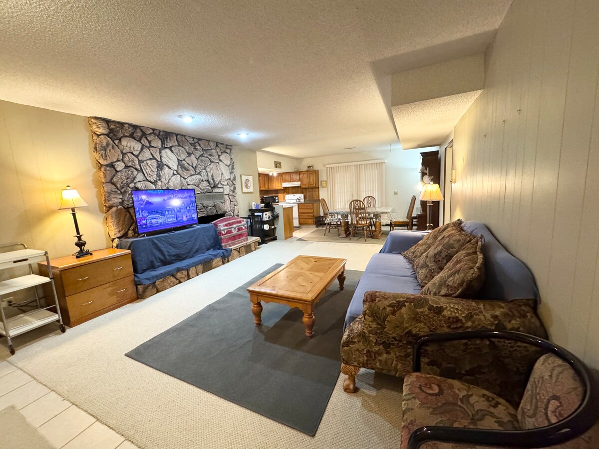 Uživaćete u mirnom okruženju sa svim sadržajima odmarališta u odmaralištu JW Resort. Uključujući grijani unutrašnji bazen, hidromasažnu kadu, saunu i igre. Naši gosti dolaze da stvaraju uspomene, a ne samo da spavaju! Skijalište Afton Alps je otvoreno! Udaljen je samo 8 minuta. Nema ništa bolje od kupanja u hidromasažnoj kadi ili sauni nakon cjelodnevnog boravka na skijalištu. Nikad dosadan trenutak sa širokim spektrom igara, uključujući bilijar, krokinole i društvene igre. Može da spava do 8 osoba sa privatnom kuhinjom, vešom i kupatilom