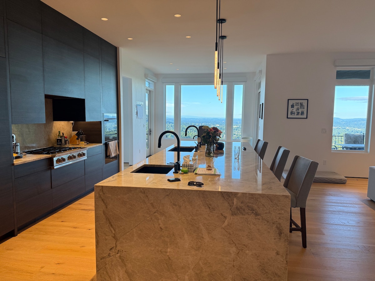 This is a private guest suite attached to our home (not a detached unit), with its own separate entrance and patio. Exclusive guest suite in striking new modern home tucked into the forested ridgelines of the Tualatin Mountains north of Portland. Floor to ceiling windows frame private views of the natural forest landscape, and offer plenty of natural light. Private guest entry, covered patio with fire-pit. It's just a short walk to our Farm property and vineyard valley views.