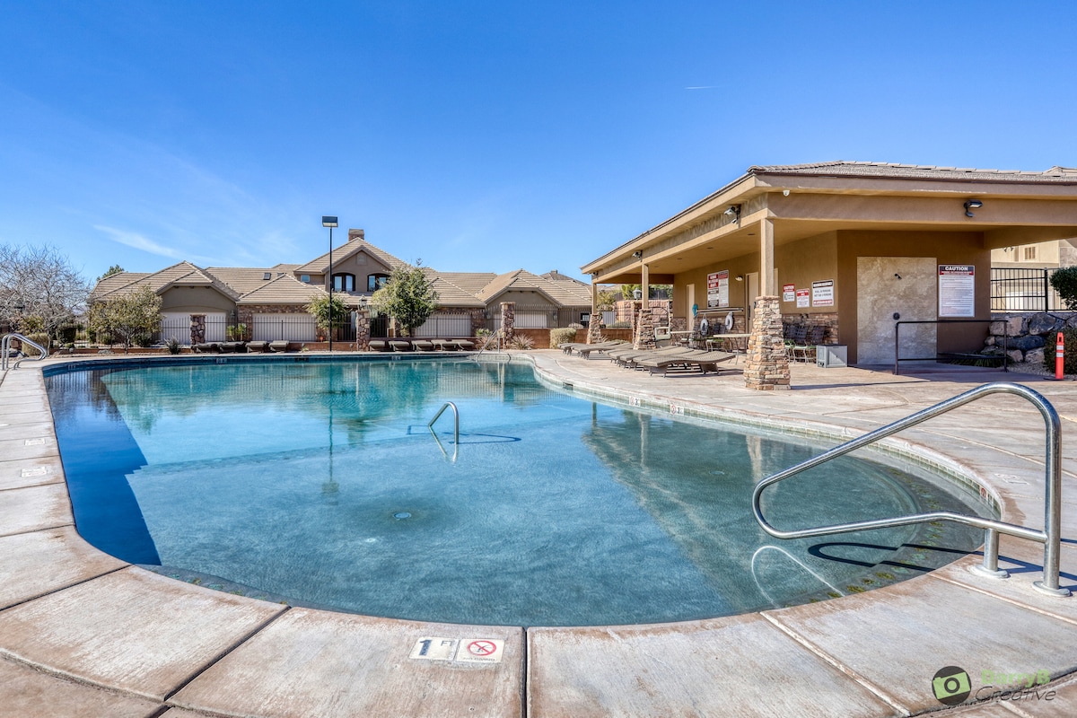 Prostran, trosoban stan u sportskom selu. Spava 8. Uživajte u satima zabave na staroj arkadnoj konzoli! Odmaralište uključuje bazene, hidromasažne kade, tenis, mini golf, odbojku na pesku, košarku, racquetball i još mnogo toga! Savršeno za odmor sa prijateljima ili porodicom. Nevjerovatne staze za planinarenje, biciklizam i uživanje u sjajnoj prirodi nalaze se u neposrednoj blizini. Nacionalni park Zions, Državni park Snou Kenjon i jezero Sand Hollow nalaze se na udaljenosti od vožnje.