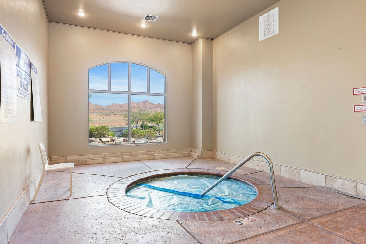 This condo is in the quiet, relaxing Amira Resort community in Green Valley with a beautiful heated family pool and hot tub open year round. Amira sits right in the heart of some of Southern Utah’s best biking/walking trails, family entertainment, and more. This is a King room with pull out couch for the kids. The large bathroom, full kitchen, and patio overlooking the adult pool make is a great choice.