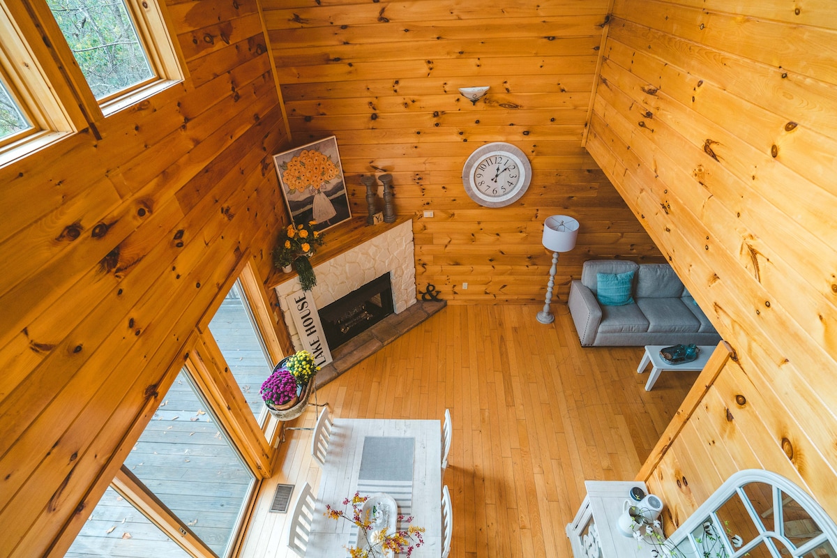 Na jezeru, privatnom pristaništu i udobnoj brvnari. 2,8 hektara u zabačenoj uvali. 400 stopa PRIVATNE OBALE JEZERA sa pristupom vodi tokom cijele godine i novim pristaništem. Predivan pogled na jezero i planine. Spustite se niz stepenice i skočite u treće najčišće jezero na selu! Veslajte našim 17ft kanuom ili 2 kajaka, pogledajte ćelave orlove ili istražite 105 milja nacionalne šume. Zatim se opustite pored ognjišta na otvorenom kako biste završili dan sa pogledom na zalazak sunca.