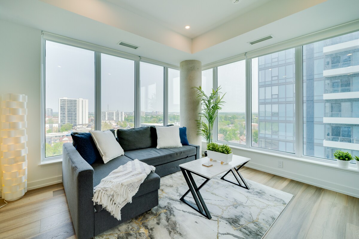 Tražite luksuzan kratak odmor? Ovaj jednosobni kondominijum u visokoj zgradi nudi sve sadržaje koji su vam potrebni, što ga čini savršenim za putnike koji putuju sami, parove ili poslovne ljude. Uživajte u veličanstvenom pogledu na Kičener sa svog privatnog balkona, pripremite ukusan obrok u potpuno opremljenoj kuhinji i opustite se u dnevnom boravku otvorenog koncepta uz omiljene emisije na pametnom TV-u. Jeste li spremni da se opustite sa stilom? Rezervišite smještaj odmah!
