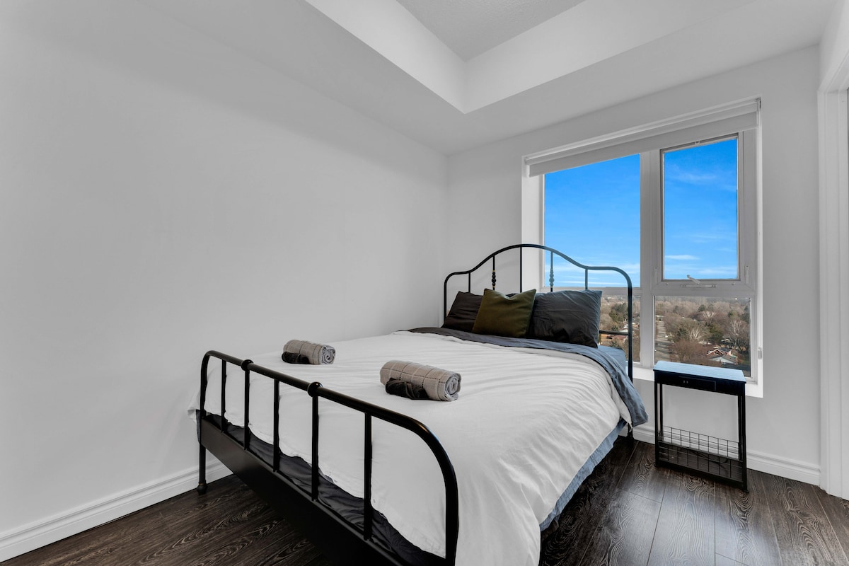 Dobro došli u naš otvoreni koncept nebodera sa pogledom na grad u srcu Kičener-Vaterloa, gdje se stil i udobnost spajaju kako bi se stvorio zaista nezaboravan boravak. Ova jedinica otvorenog tipa s 1 spavaćom sobom pažljivo je dizajnirana da primi do 4 gosta, što je čini savršenom za parove, male porodice ili putnike koji putuju sami i traže moderan i udoban smještaj. ✔ Potpuno opremljena kuhinja ✔ Udobna spavaća soba sa bračnim krevetom ( širine 150-179 cm Dnevni prostor✔ otvorenog koncepta ✔ Brzi Wi-Fi ✔ Besplatan parking ✔️Pristup teretani Saznajte više u nastavku!