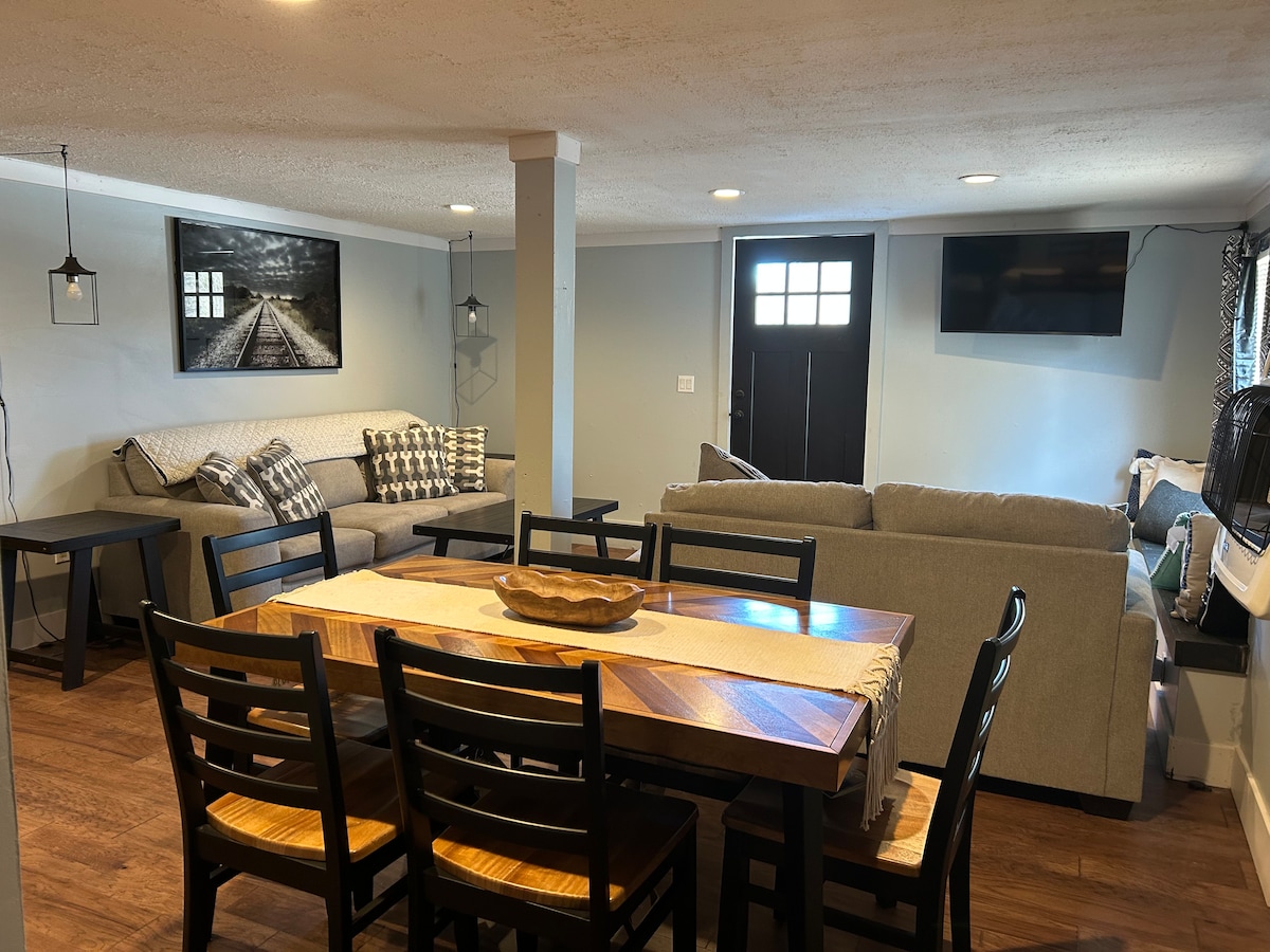 Uživajte u elegantnom doživljaju u ovom garsonjeri na centralnoj lokaciji. Restoran i bar prekoputa. Mirno .3 milje hoda niz prašnjavi put do jezera gde možete uživati u kajaku, plivanju ili samo gledanju zalaska sunca na našem polu privatnom doku. Udobnost doma u prelepom studiju. Bračni krevet, dupli izvlačenje, pametni TV, besplatan Wi-Fi, kompletna kuhinja i kupatilo. Savršeno za 1-3 osobe. Sveže renoviran u skladu sa najvišim standardima. Porodica je u vlasništvu i kojom upravljaju lokalni superdomaćini. Dođi da ostaneš sa nama.