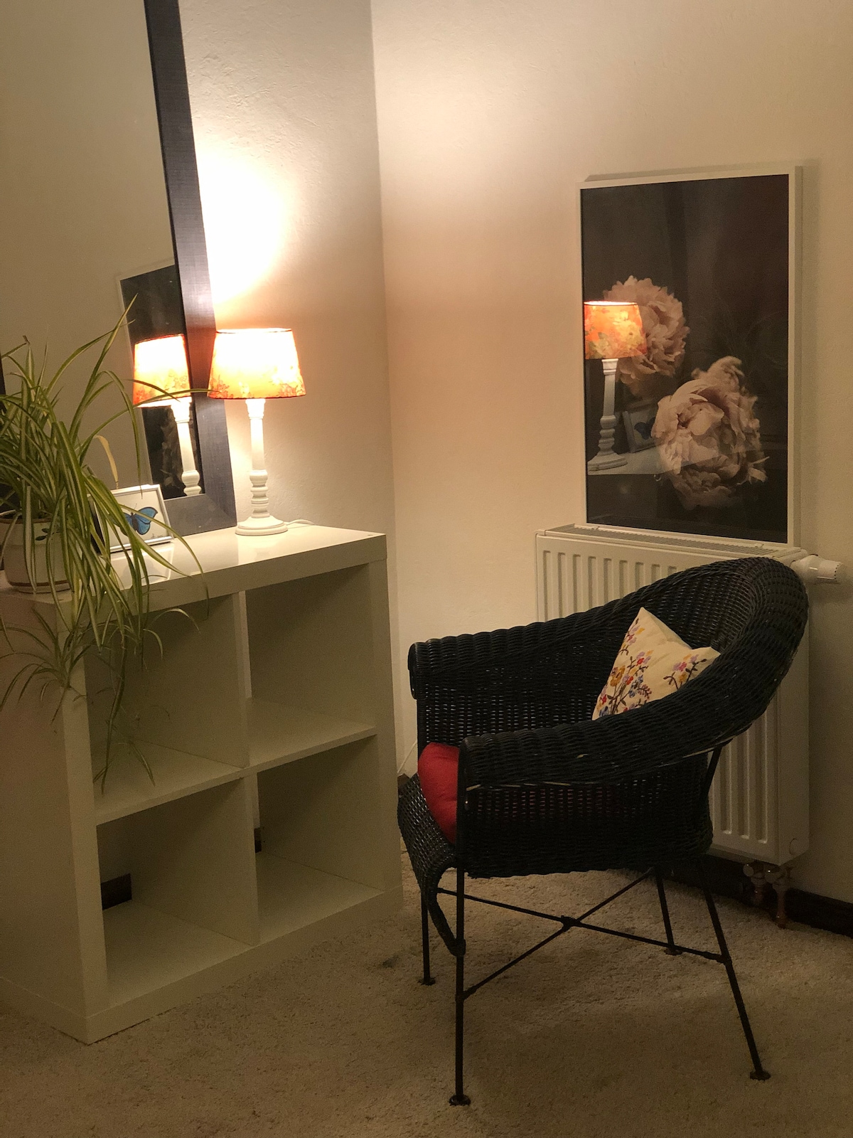 Soba se nalazi u podrumu vile na dobroj lokaciji Weimar-a. Ima zaseban ulaz sa bočne strane vile gde se takođe nalazi mali spoljni prostor za sedenje sa stolom za goste. Tamo se spuštate nekoliko stepenica do ulaza. U predsoblju se nalazi garderoba u kojoj se nalazi i frižider i aparat za kafu Nespresso. WC šolja je dostupna odatle. Spavaća soba ima krevet dimenzija 1,40x2 m sa prostorom za sedenje i malo kupatilo sa tuš-kabinom. Nema kuhinje!