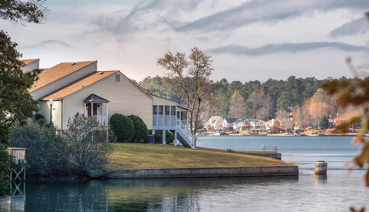 Escape the everyday at this intimate Georgia resort with a friendly, small-town “bed and breakfast” vibe. Conveniently close to the highway, you’ll be relaxing by the lake or teeing off in no time. Studio: open floor plan with king or queen bed, seating area and flat-screen TV, compact kitchenette (or kitchenette option), one full bath, private patio/balcony (select units), climate control, high-speed Wi‑Fi, in-room safe, and in-unit or guest laundry; accessible options available.
