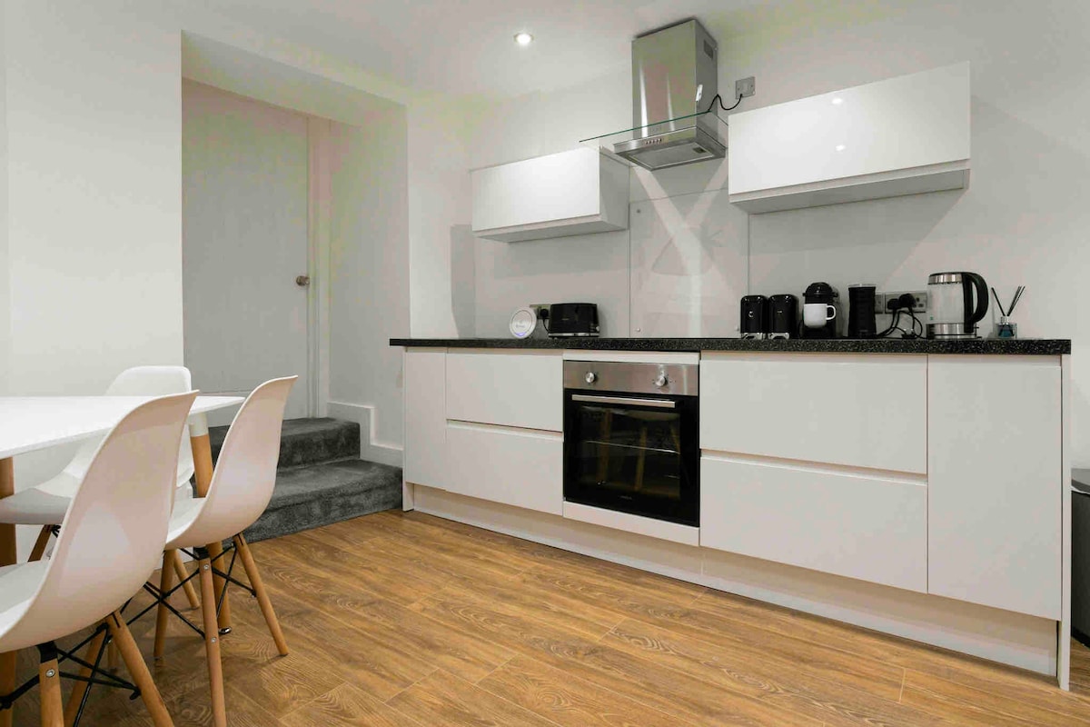 Boravite u srcu Velsa u Cuthbert’s Corneru – elegantnom dvospratnom loft apartmanu. Nalazi se na nekoliko minuta hoda od Velske katedrale i idealan je za parove, prijatelje ili male porodice. Uživajte u svijetlom dnevnom boravku otvorenog tipa sa prostorom za opuštanje/ručavanje u kojem se nalazi Samsung Frame televizor, kao i u dobro opremljenoj kuhinji. Na spratu se nalazi bračni krevet (širine 180–220 cm), kao i dvosjed na razvlačenje u dnevnom boravku, pa mogu da spavaju do 4 osobe. Savršeno za vikend-odmore, venčanja ili istraživanje Somerseta, sa svim što vam je potrebno pred vratima.