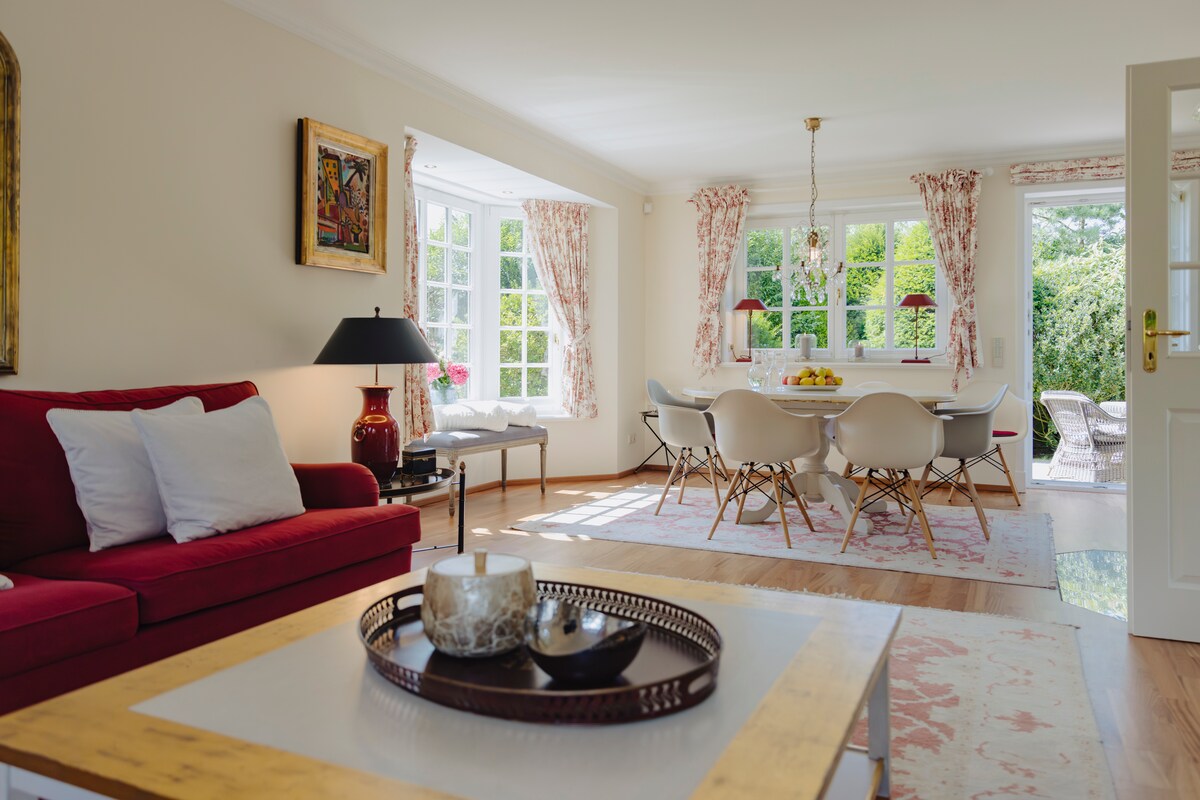 Odmah pored posebno lijepog Braderuper Hajda, daleko od gužve i vreve, a ipak nedaleko od zapadne plaže, ova posebna oaza dobrog osjećaja nalazi se ispod slame. Posebnost ovog stilski namještenog stana u galeriji je sauna, koja vaš boravak čini slađim u svako doba godine. Stolice za plažu su dostupne u sklopu objekta za sunčane trenutke godine.