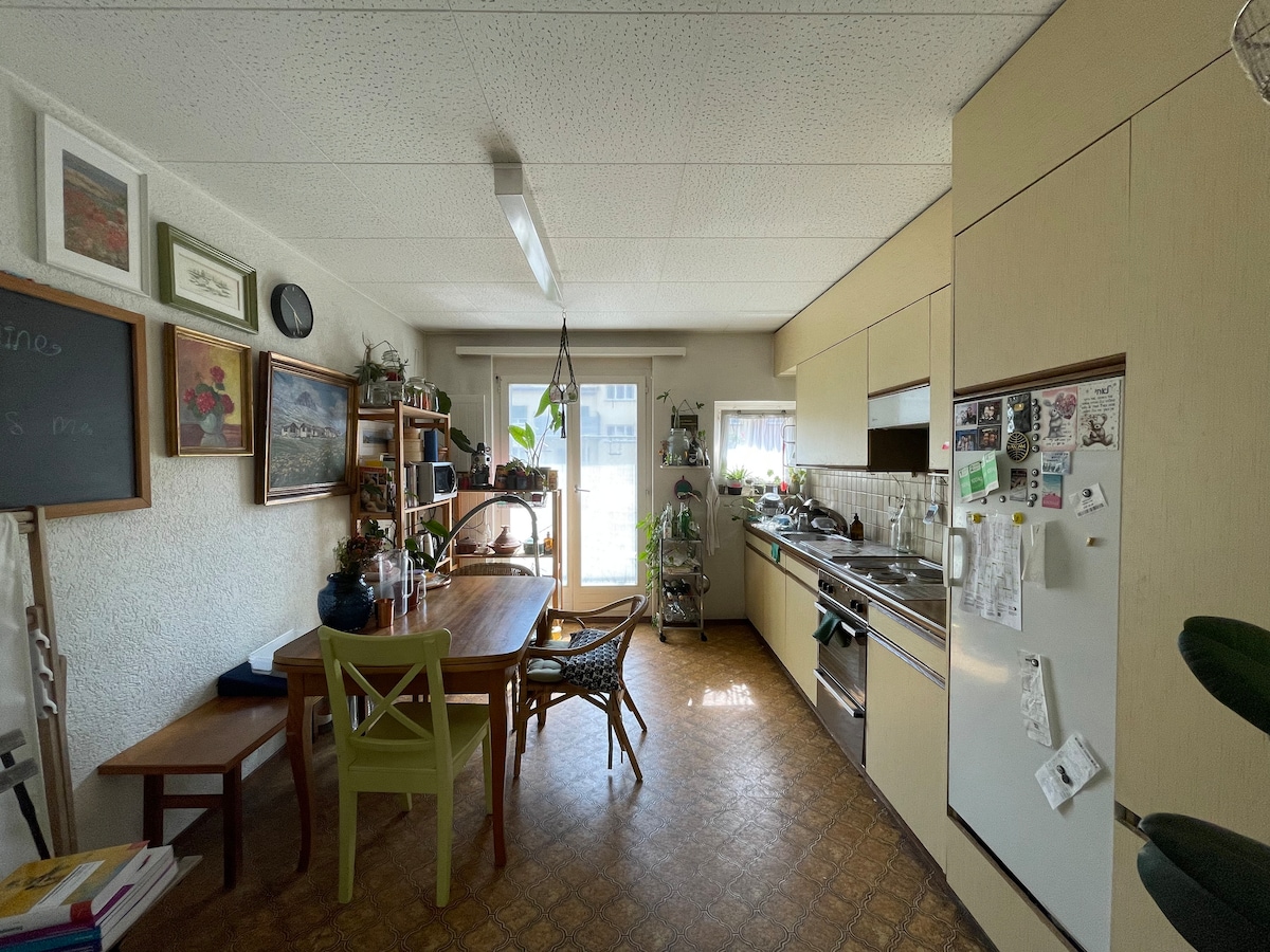 Udoban, moderan stan u srcu Ciriha, u kojem obično živim sam. Samo 5 minuta hoda do stanice Viedikon (tramvaj, voz, autobus) i 15 minuta do glavne željezničke stanice. U stanu se nalazi veliki bračni krevet, dnevni boravak za opuštanje i prostor za kućnu kancelariju. Savršeno za parove, poslovne putnike ili pojedince. Lični dom na centralnoj lokaciji.
