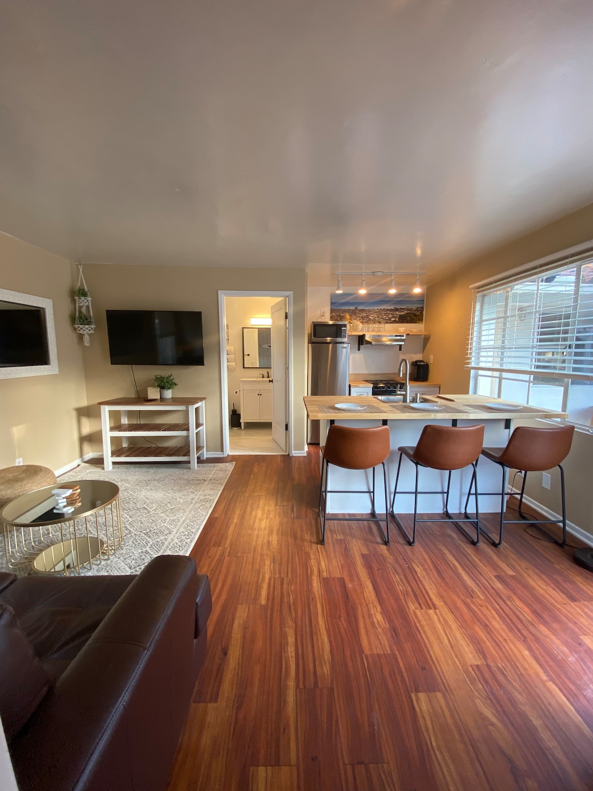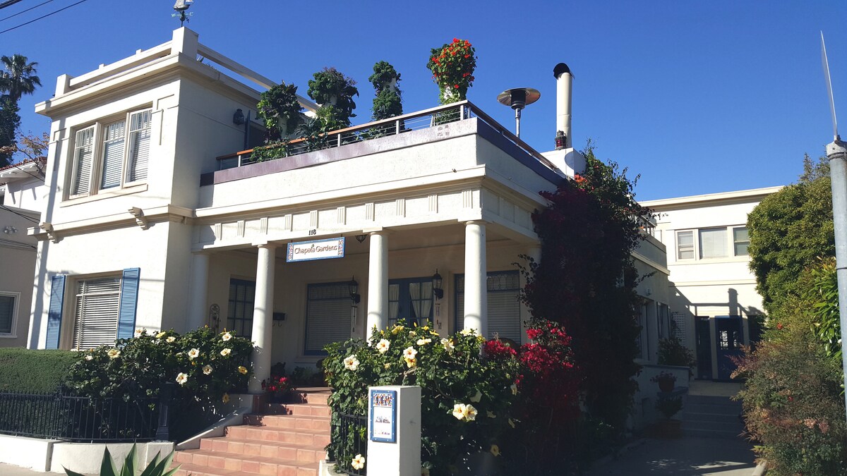Uživajte u najboljem od Santa Barbare iz ovog prelepog apartmana za goste sa 1 spavaćom sobom (pričvršćenom za našu kuću) u četvrti Mesa. Smještena u mirnom ćorsokaku, ova jedinica je savršena za ugodan odmor. Nalazimo se na kratkoj udaljenosti (3,5 bloka) od stepenica na plaži (241 stepenica); prelep park na litici (Porodični rezervat Daglas); Shoreline Park; Shoreline Park; u blizini odličnih restorana; lijepe pijace organske hrane; i samo kratka vožnja (~7 minuta) do ulice State Street i čuvene Funk zone Santa Barbare.