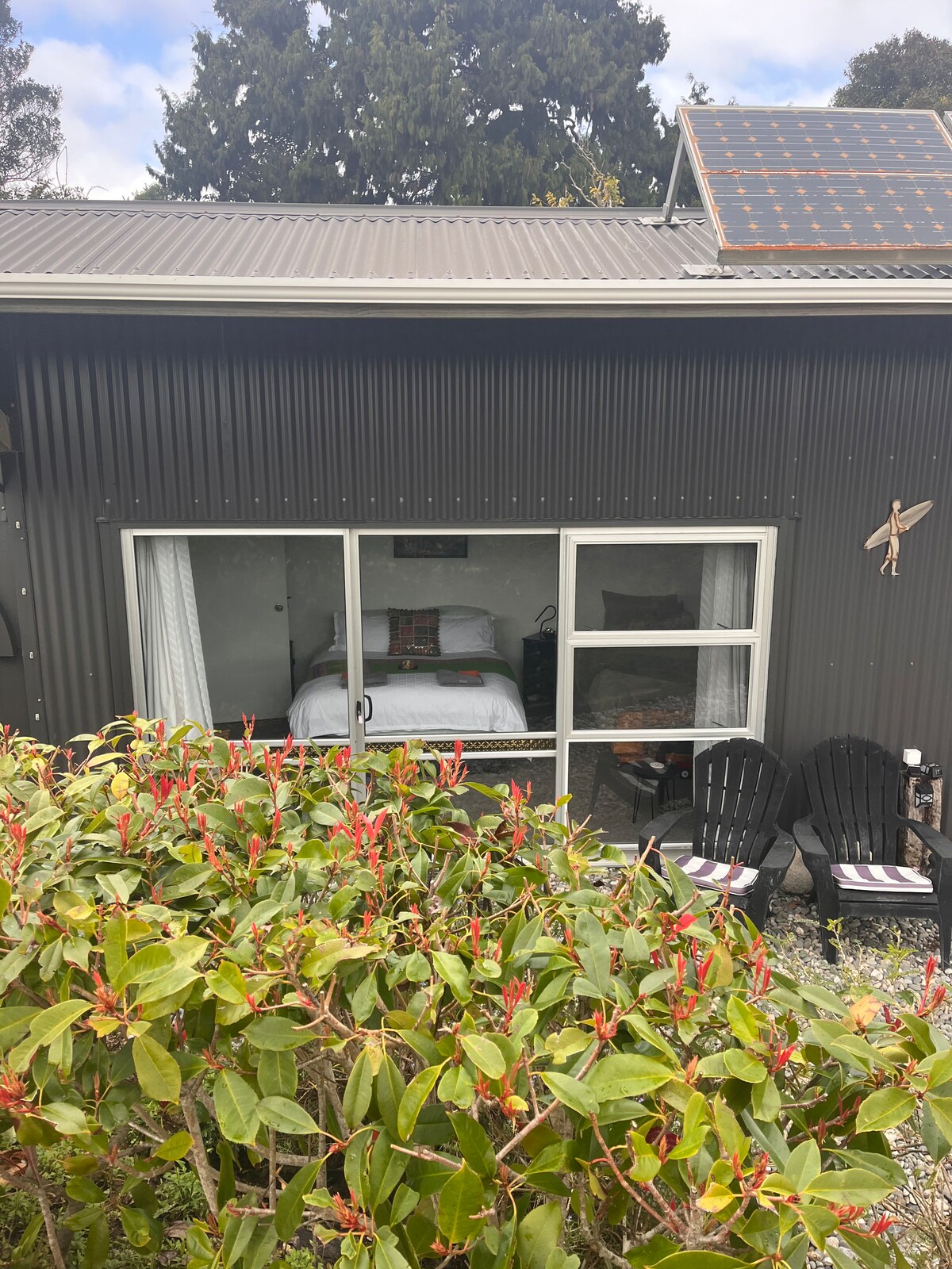 Situated in a private lifestyle setting and just a short walk to the beach and access to the West Coast Cycle Trail. We offer a queen bedroom with bathroom. Tea and coffee making facilities are provided along with filtered water in the room and a microwave for heating your pre cooked meals. On site parking and outdoor seating to enjoy our beautiful sunsets. There is a takeaway/dairy close by as well as Hotel/ Restaurants all just a short drive or cycle. Late checkout by arrangement only.