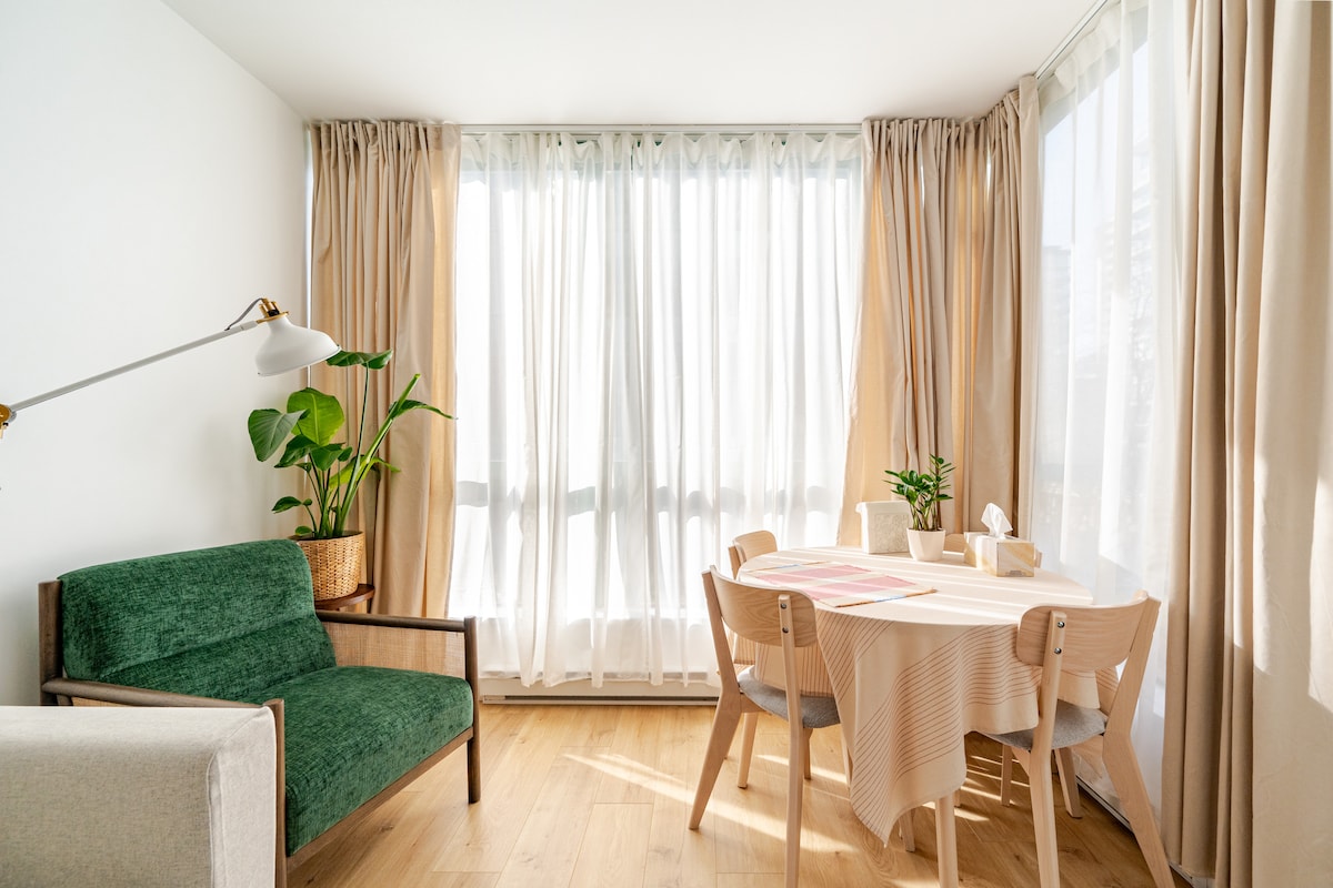 Amazing location, Canadian art, design and a great view. Treat yourself to a 5-star stay in my condo - perched high in the sky - right in the middle of downtown Vancouver. Walk everywhere, from mouth-watering restaurants, to shopping and even the seawall a short walk away. Super easy to get to from the airport - just a quick 10-minute walk from the skytrain. This is the perfect place to relax and unwind before exploring the town. This is a chill space though - please, no parties or events.