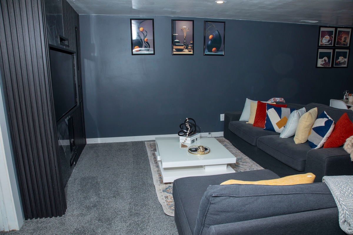 Renoviran 1 spavaća soba - licencirani podrumski apartman sa privatnim ulazom (samostalna prijava). Ima privatno kupatilo, roštilj u dvorištu - nova terasa (vremenske dozvole). Mokri bar sa Keurigom, mikrotalasnom rernom i sl. za vaše potrebe za trpezarijom i popravkom kafe. Grejna ploča na zahtev. Lokacija se nalazi u blizini prodavnice Harris Meat & Grocery, 2 minute od autobuske stanice, 3 minute vožnje do Mekdonaldsa i 6 minuta vožnje do tržnih centara. Uživajte u ovom udobnom smještaju sa svojim najmilijima i prijateljima. Popusti su dostupni za sedmične boravke!