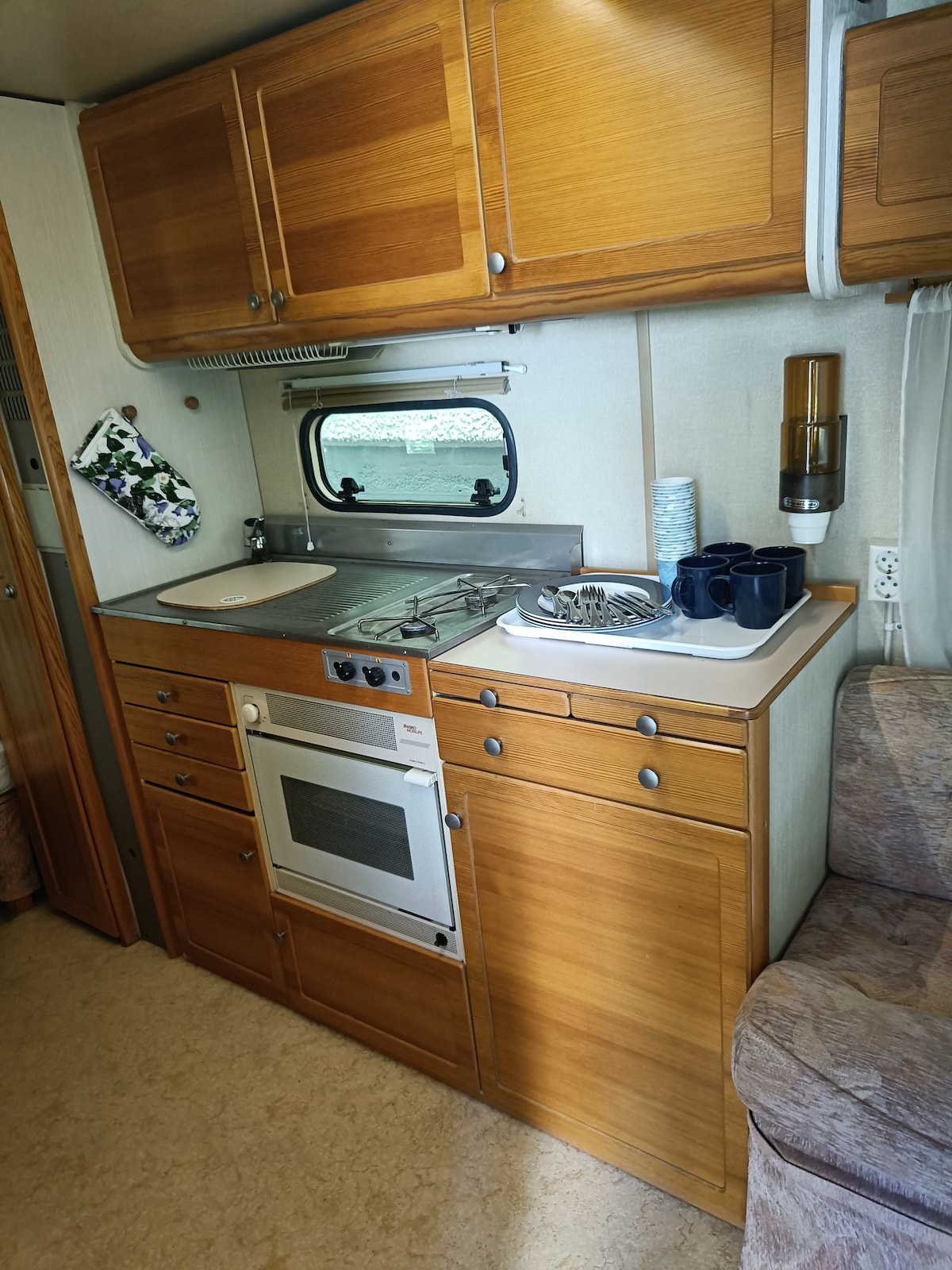 Uvijek ćete se sjećati svog boravka u ovom romantičnom i nezaboravnom smještaju. Iznajmljujemo Knaus sa dobrom opremom. Praktično za porodicu sa djecom. U vagonu se nalaze trostruki krevet na sprat, bračni krevet i krevet za dvoje. Vagon ima frikcionu glavu, kasetne zavese na prozorima, rezervoar za svežu vodu od 45 l, sistem za recirkulaciju vazduha od 12 V i Trumatic centralno grejanje vazduhom.