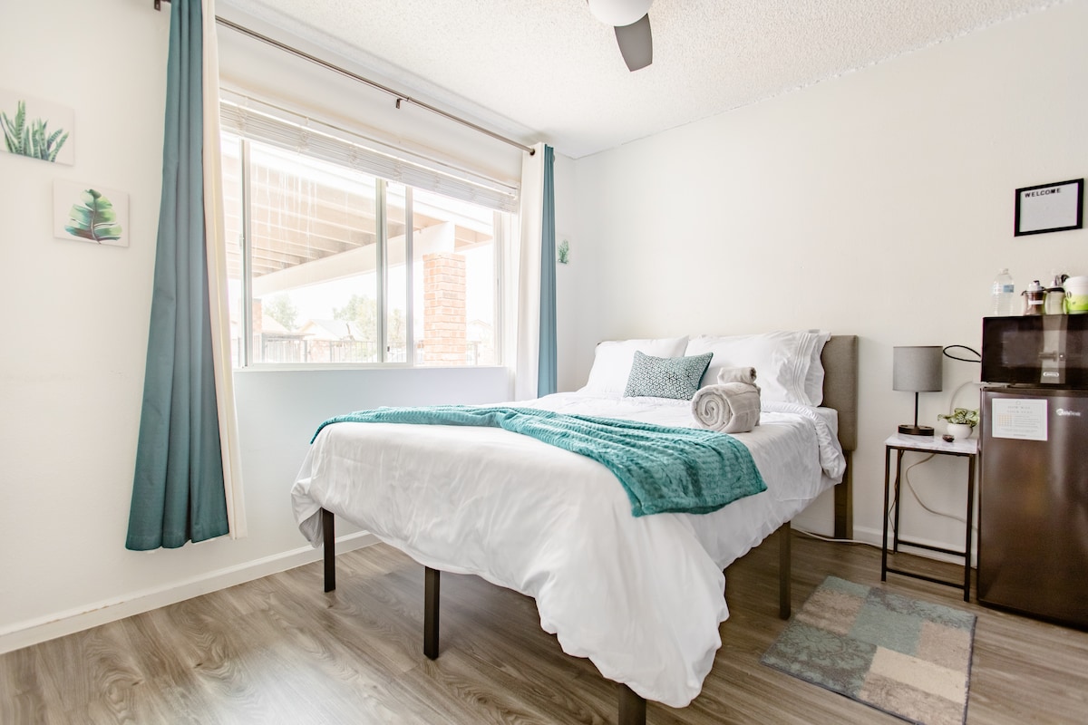 Nalazi se u mirnom, porodičnom delu grada, u blizini prodavnica/tržnih centara, restorana, autoputeva i popularnog centra grada Gilberta. Manje od 30 minuta do aerodroma PHX Sky Harbor i centra Finiksa, uključujući prolećne terene za bejzbol MLB. Parking na prilazu, privatni ulaz, privatna čajna kuhinja, kupatilo i ormar. Prostor ima bračni krevet u spavaćoj sobi i opcioni dušek na naduvavanje (Queen Air), a na raspolaganju je i pakovanje i igra. Wi-Fi, TV i Roku su uključeni za strimovanje. Lični klima-uređaj i grijalica.