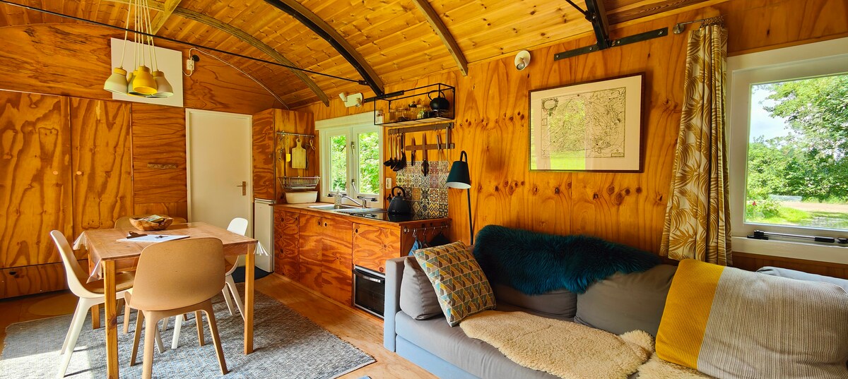 Peace and Quiet. In our atmospheric ecological Shepherd's hut you can enjoy the Ruinen forestry in the front garden and the Dwingelderveld in the backyard is a 10minute bike ride away. Your accommodation has 2 comfortable beds, shower and compost toilet and a kitchenette with fridge. WiFi available. From your raised terrace you have a view over the fields where you can watch the sun go down while enjoying a glass of wine. From the edge of our yard with its own entrance, you can discover Ruinen